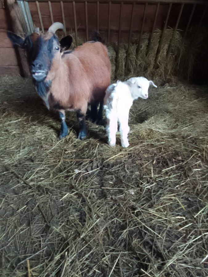 La mère : Blanche (chèvre des Pyrénées )